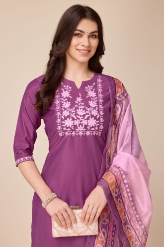 Purpleish Vatican Kurti Set with Chinnon Dupatta – 3/4 Sleeves