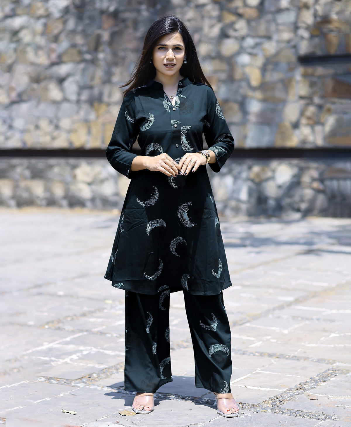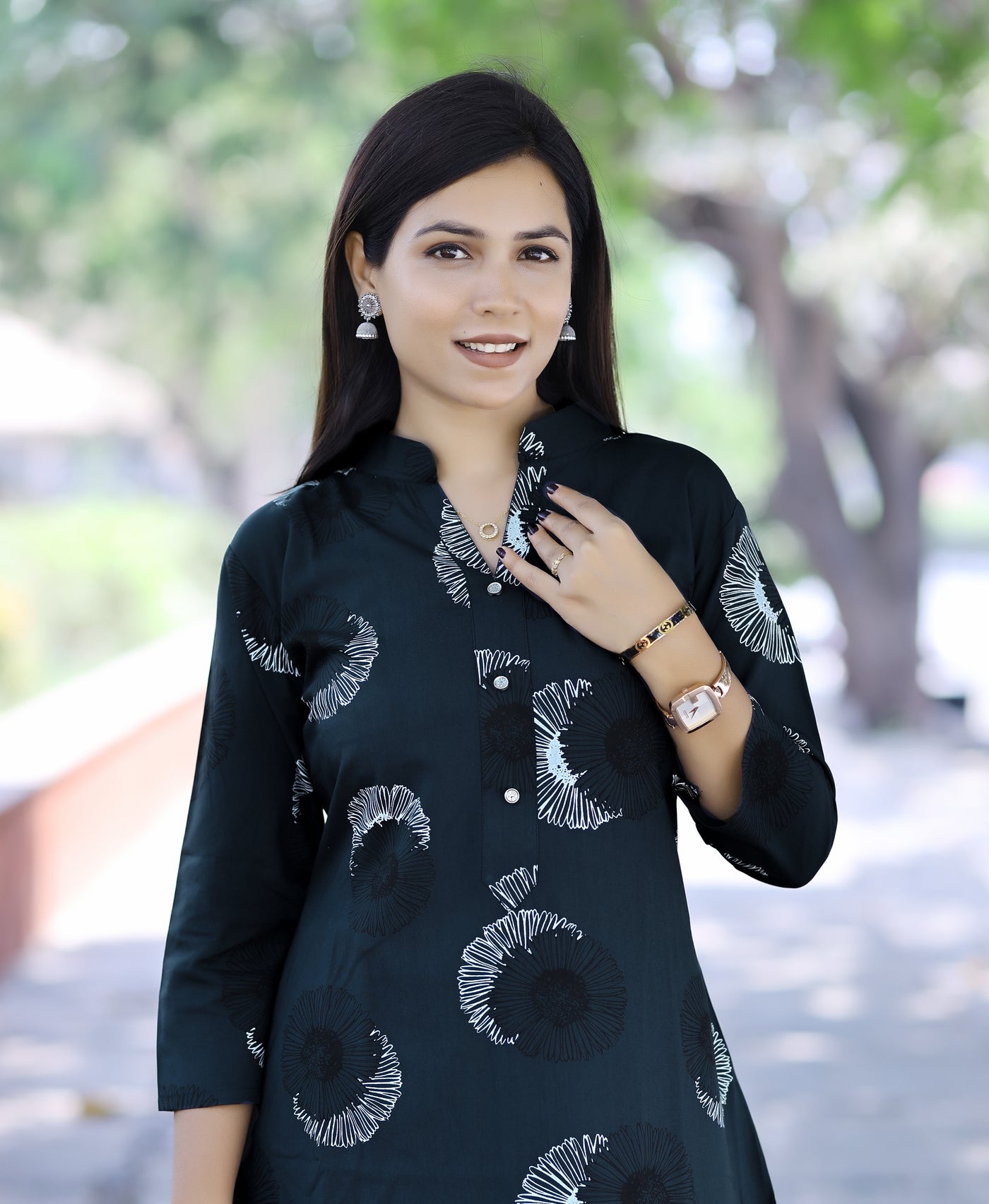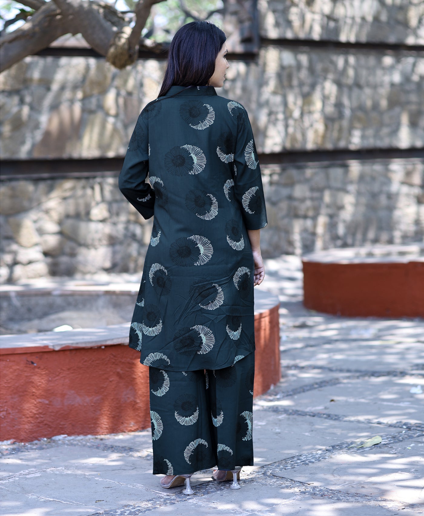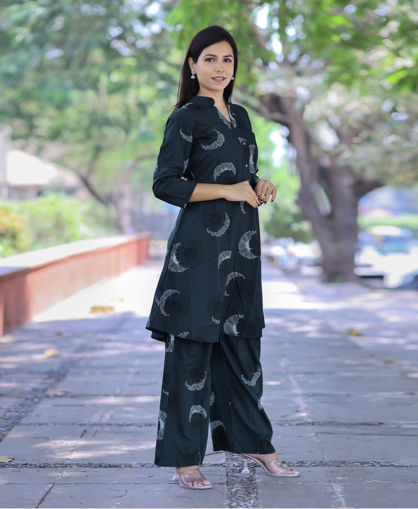 Navy Blue Rayon Viscose 21 KG Floral & Leaf Printed Co-ord Set